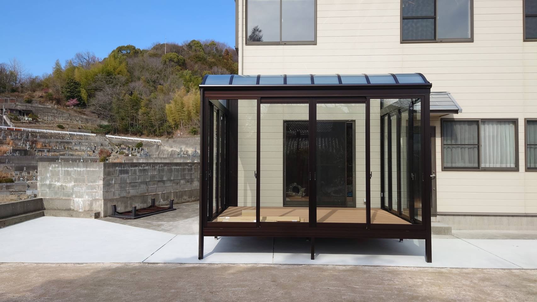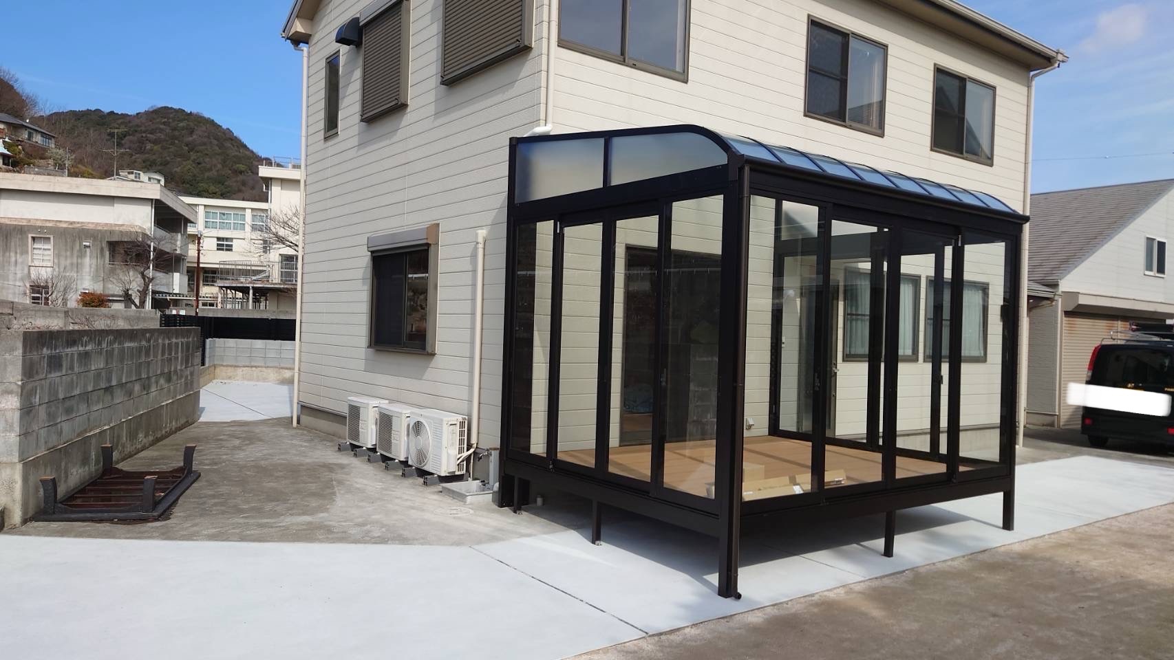呉現場 サンルーム取付工事|呉市で新築外構工事業者をお探しならエール!修繕によるお庭のリフォームや水回りリフォームもご対応可能です